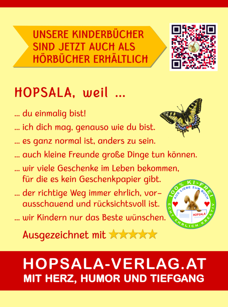 Der Hopsala-Verlag ist ein junger österreichischer Verlag, der mit viel Herz, Humor und Tiefgang Kinderbücher gestaltet und herausbringt.